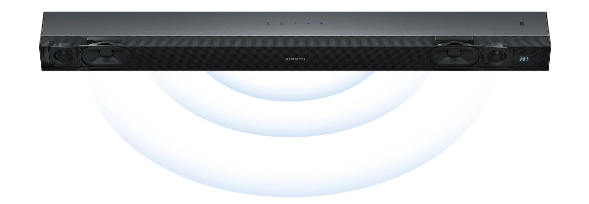 Xiaomi Soundbar Pro 2.0 создан в аккуратном минималистичном стиле, который легко вписывается под любой современный телевизор. Передняя металлическая сетка скрывает динамики и делает панель визуально цельной, а корпус с алюминиевым акцентом выглядит строго и аккуратно. Ширина в 84 см помогает саундбару гармонично смотреться под 43–55-дюймовыми телевизорами, при этом он остаётся достаточно лёгким, чтобы без проблем разместить его как на тумбе, так и на стене. Компактная высота не закрывает нижнюю часть экрана и не мешает просмотру.