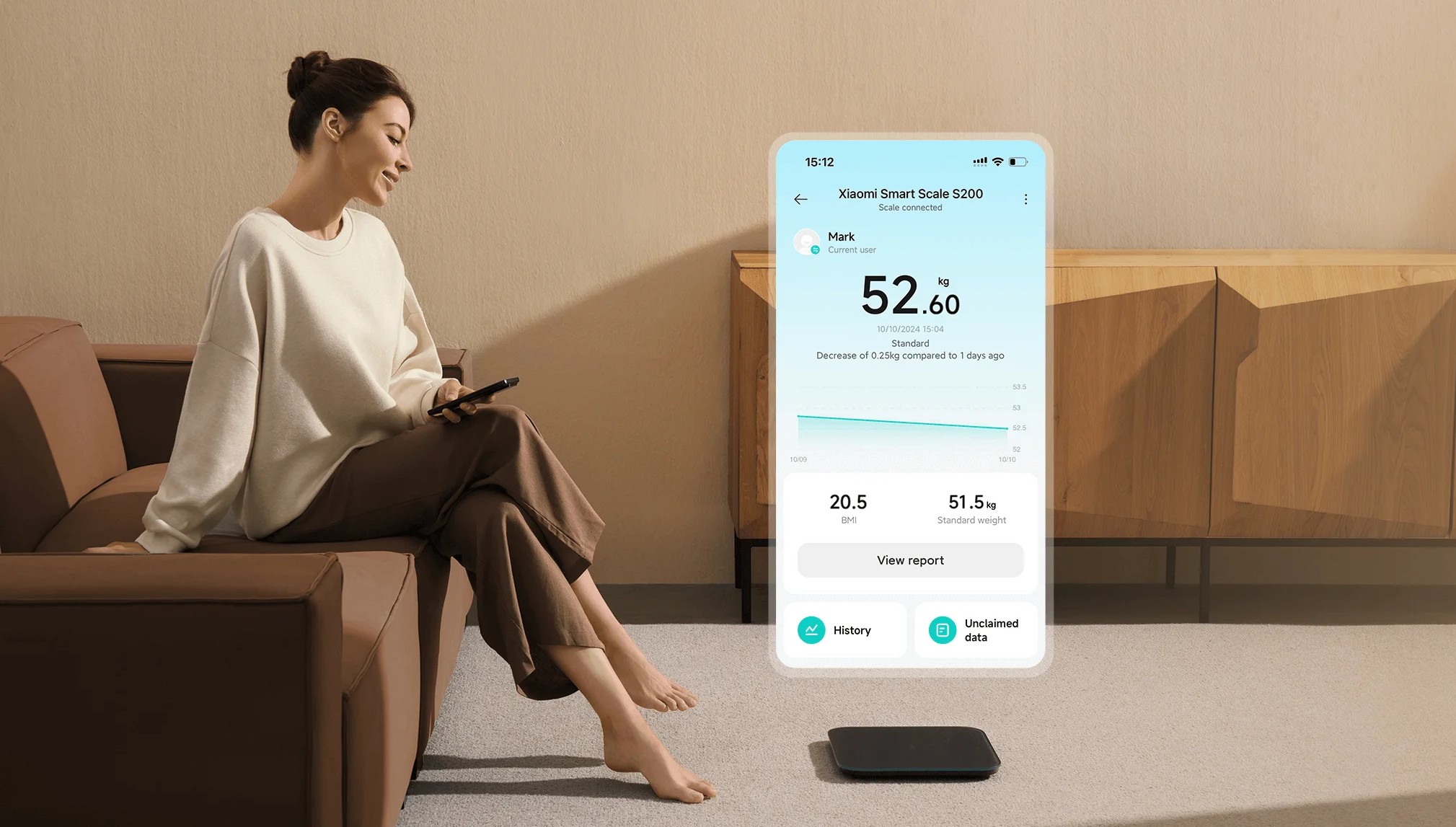 Благодаря интеграции с приложением MiHome весы способны сохранить информацию о 36 пользователях одновременно. Приложение позволяет легко управлять устройством, получать индивидуальные отчеты о весе и просматривать статистику.